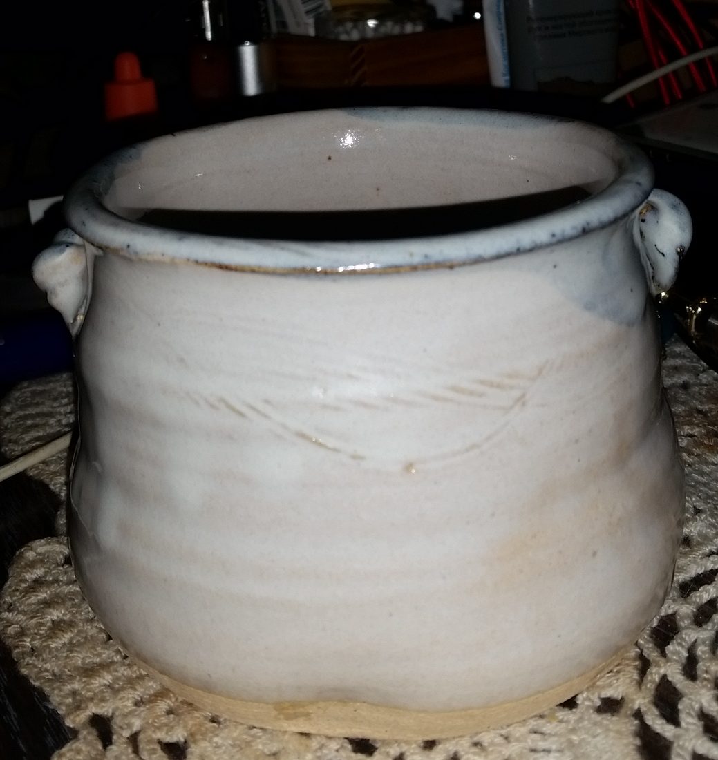 Some Japanese tea bowls change with time and use. They start out a little leaky and smelling very earthy, but with multiple uses get stronger. The microbes and minerals help also to strengthen the drinker, and may be one reason some Japanese people are so long lived. I dont know about that, but this bowl fits perfectly in my hand and was obviously made for some special clumsy person like me.